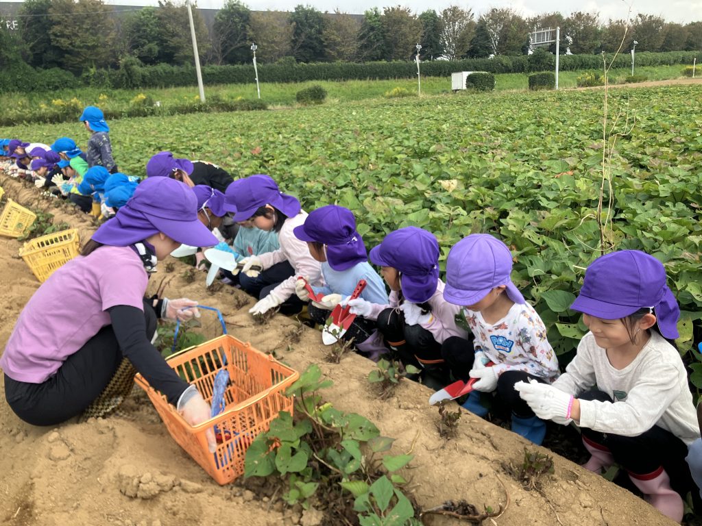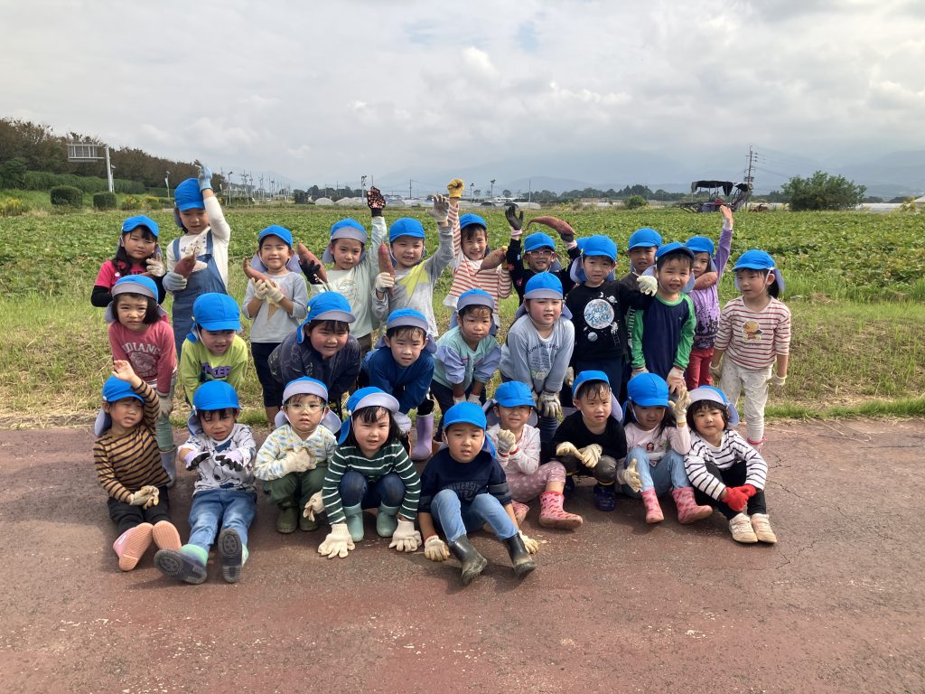 10月15日(水)は、お芋ほりの日。子どもたちも楽しみにしていたようで、テンションが高かったです。今年のお芋は大きいのが多くて子どもたちも悪戦苦闘…途中で休憩しているお友だちもいました。😄写真屋さんもこられているので、販売をお楽しみに・・・